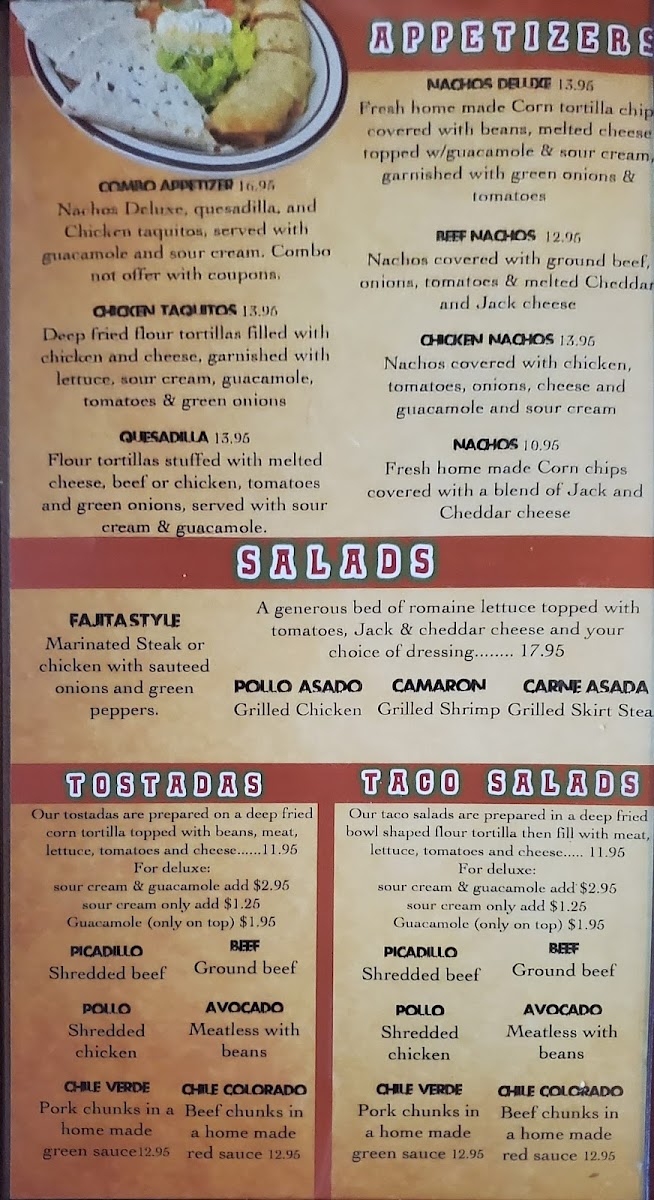 Nachos Deluxe, quesadilla, and Chicken taquitos, served with guacamole and sour cream. Combo not offer with coupons.